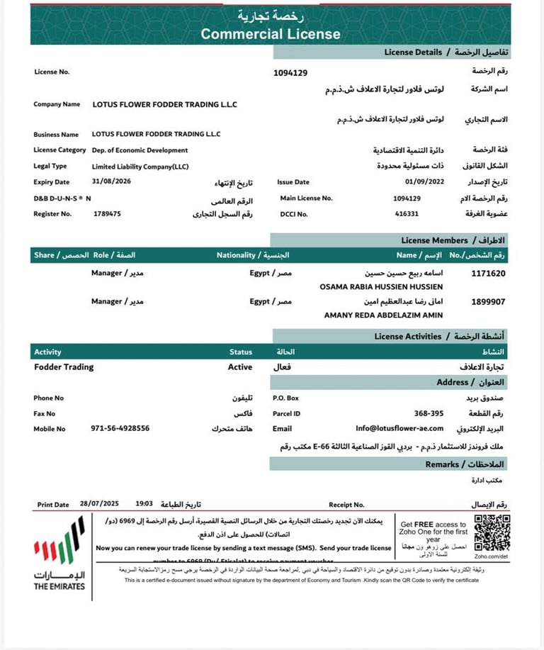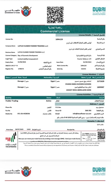 تعد Lotus Flower من الشركات الرائدة في استيراد وتجارة أعلاف الحيوانات في أسواق دولة الإمارات وخارجها.